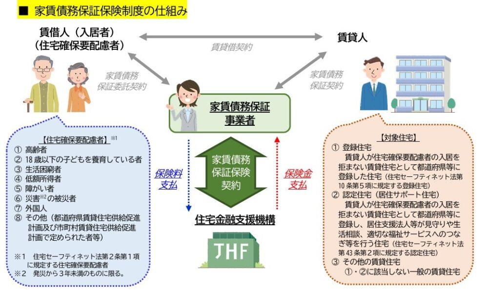 家賃債務保証保険制度とは、国から認定を受けた家賃債務保証事業者が住宅確保要配慮者の家賃債務を保証する場合に、住宅金融支援機構がその保証の保険を引き受ける制度。現行制度では、住宅セーフティネット法で規定する「登録住宅」(住宅確保要配慮者の入居を拒まない住宅)のみを対象にしている。