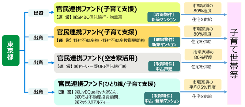 東京都は、子育て世帯に対し、家賃が市場相場から2割程度割安な賃貸住宅を供給する。この取り組みを進めるため、「官民連携アフォーダブル住宅供給促進ファンド」の組成を進めており、このほどその運営事業者候補を選定した。