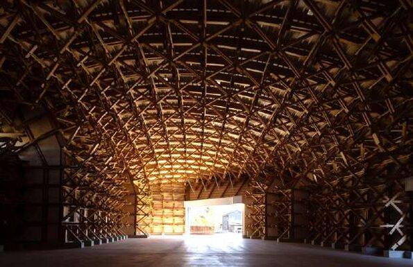 短尺の地域材で「無柱大空間」を実現