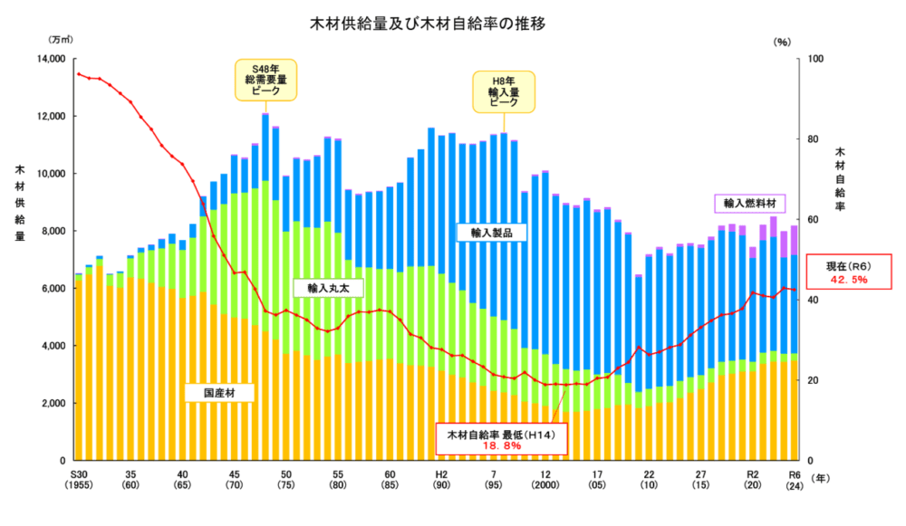 24年木材需要8187万㎡ 建築用材など増加で2.5%増