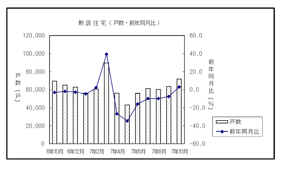 2025年10月の新設住宅着工戸数は7カ月ぶりの増加に転じたことが、国土交通省の着工統計調査で明らかになった。