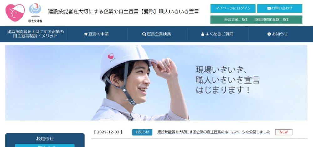 国土交通省は、建設技能者の処遇改善を積極的に行う企業と、その取り組み内容を公表する新制度「建設技能者を大切にする企業の自主宣言」(職人いきいき宣言)を創設する。