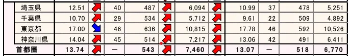 都道府県別にみると、最も年収倍率が高かったのは東京都で17.00倍。次点で高い神奈川県の14.04倍を3ポイント近くも上回る。首都圏全体では、平均年収に比べて新築価格の上昇度合いが上回り、年収倍率は13.74倍となった。千葉県は10.70倍であり、9年ぶりの10倍台に達している。