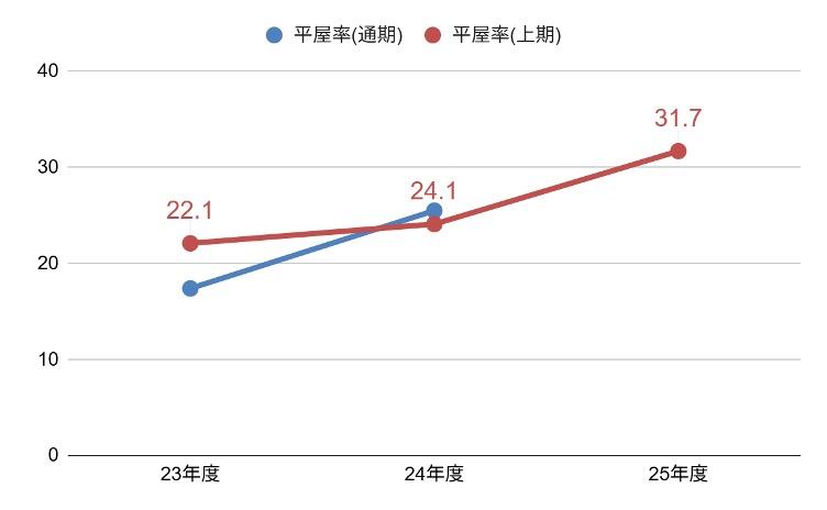近年、生活様式の変化などによって平屋ニーズが拡大。これに伴い、同社は2020年7月に主力商品の「アリエッタ」に平屋商品「アリエッタ HIRAYA」を追加した。その後、徐々に顧客からの支持が増え、23年上期には供給する全住宅に対する平屋率が22%超え。24年上期に24%となり、直近の25年上期は31.7%にまで伸びている。