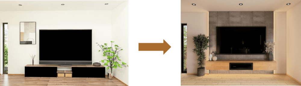 第一弾商品として、テレビ周りを自分好みにカスタマイズできる「Custom TV Wall(カスタムテレビウォール)」を展開する。この商品では、壁を一段前に出したフカシ壁を利用することで、煩雑になりがちなテレビの配線をすべて隠すことが可能だ。また、壁全面に厚み15mmの下地合板を施すことで、壁掛けテレビ金具を好みの位置に設置できるようになり、テレビ設置箇所の自由度が上がる。