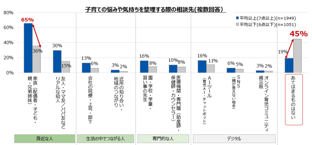 子育て中の悩み相談先、家族、友人に次いでAI
