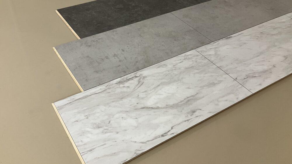 高圧メラミン化粧板は、耐熱性・耐水性・耐摩耗性に優れるほか、高い加工性・施工性などを持つ素材。一方で、湿度などの環境変化に伴って伸縮する特性があることから、日本では床材の表面材として使用されてこなかった。こうしたなか、2019年にアイカ工業が伸縮する課題を克服した非住宅向けのメラミンタイルを発売。これまで商業施設などへの納入実績を着実に積み重ねてきた。