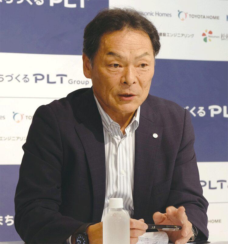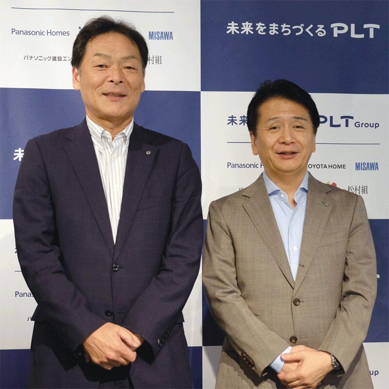 パナソニック ホームズ、トヨタホーム、ミサワホーム、パナソニック建設エンジニアリング、松村組、5社のホールディングス会社であるPLT(プライム ライフ テクノロジーズ)の道浦正治新社長と長田准新副社長が、今後の戦略について語った。