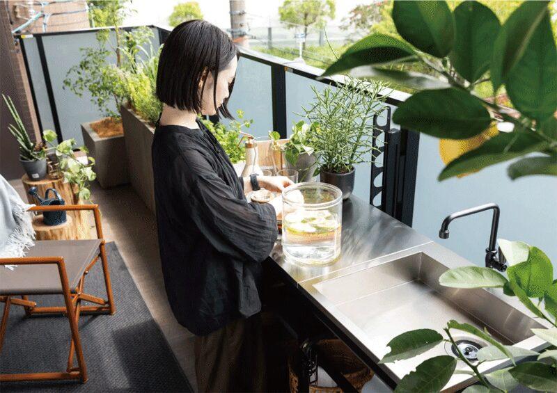 先に、ユニソンはベランダや土間のような、「ウチ(家)」と「ソト」をつなぐ場所を「ソテリア」と定義し、その場を活用したさまざまな可能性を、商品やコンテンツを通して提案する取り組みを開始している。例えば、使う機会の少なくなったベランダに、植物を育てたり、お茶を味わうスペースを設けたり、土間でインドアグリーンやDIYを楽しむ提案などだ。こうした新しい暮らし方の中に取り入れられる同社製品を紹介している。