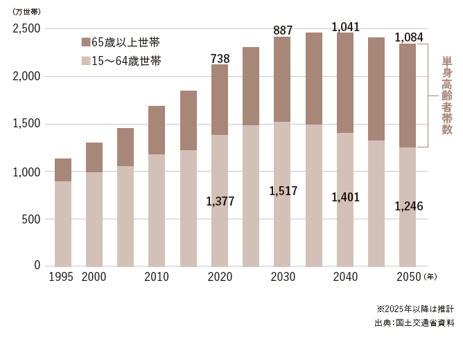 単身世帯の増加、持ち家率の低下などにより要配慮者の賃貸住宅への円滑な入居に関するニーズが高まることが想定されている。2030年には15~64歳の単身世帯数が約1517万世帯、65歳以上の単身高齢世帯が約887万世帯に迫る見通しである。一方で、全国の空き家約900万戸のうち賃貸用は約443万戸と、民間賃貸住宅の空き家は一定数存在するものの、高齢者などの要配慮者に対しては、大家の拒否感は大きい。その背景には、孤独死や死亡後の残置物処理などの課題への不安がある。見守り、入居後の課題の相談を求める大家も多い。