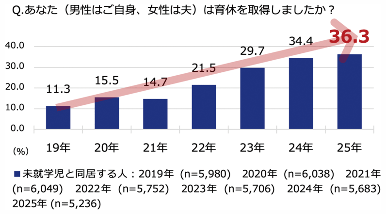 同社の育休の取り組みも進んでいる。男性社員の育休1ヶ月以上の完全取得を目指し、18年9月から特別育児休業制度の運用を開始。また、21年4月からは制度を拡充し、母親の産後うつや父親のサポートが求められる産後8週の期間内に、1日単位で自由に育休を取得できるようにした。25年8月末時点で、取得期限(子が3歳の誕生日前日まで)を迎えた男性社員2497人全員が1ヶ月以上の育休を取得しており、19年12月以降、取得率100%を継続している。