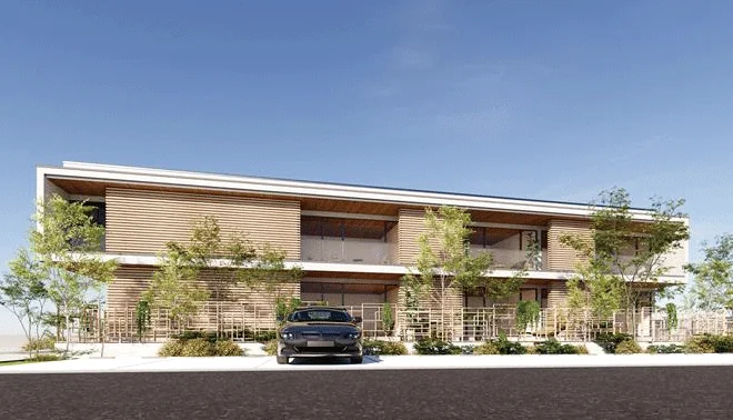 さらに2026年には、分譲限定で木造賃貸の商品を発売する。大きな特徴は、同社がデベロッパーの立場として商品のモジュールを提供し、建築は地場工務店が担うという点だ。構造や内装材には輸入材を用いる一方で、外装ルーバーに地域の間伐材を活用し、地域の木材需要と森林の再生に寄与する。竹林本部長は「15~20年のスパンでルーバーを付け替え、林業のサイクルの中にアパートを組み込む。地域の山、林業とつながっている地元の工務店に建てていただくことで地域の中で完結できる仕組み」と狙いを説明する。