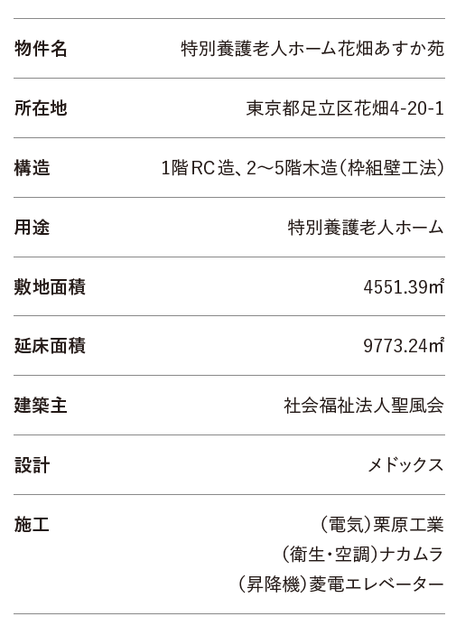 事例② メドックス(東京都新宿区) 物件:特別養護老人ホーム花畑あすか苑(東京都足立区)