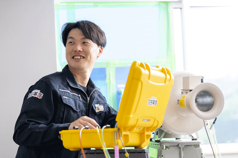 現在加盟店を募集中。特に、住宅業界で何らかの商品販売や施工を行っている事業者と親和性が高いのではないかとみている。これまで大工、断熱材施工、サッシ取付など、住宅業界で施工者として働いてきた人が気密測定まで行えるようになることで、既存の事業利益にプラスして収入を得られるようになる。また、気密測定事業をフックに、顧客の新規開拓にもつながる。新築戸建住宅の着工件数が落ちるなか、他社との競争力を高められる材料として提案を進める。