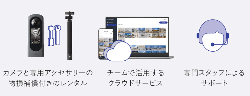 こうしたなかリコーは、利用者のITスキルに依存せず、誰でも迷わず確実に使えることを狙いに「RICHO360 ビジネスパッケージ タイプS」を開発した。「シンプルな仕組みで技術的な知識が不要、すぐに業務に定着して効果も出る」(事業推進室プランニンググループ 刑部佳和氏)というトータルソリューションで、カメラと専用アクセサリーの物損補償付きのレンタルと、チームで活用するクラウドサービス、さらに専門家によるサポートが一つにパッケージされている。