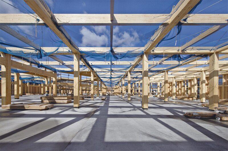 様々な企業が中心となり、中大規模木造建築を建てやすくするためのハード面の技術開発が進む。中大規模木造の可能性を広げる「構法」と、それを実装するための「部材供給の枠組み」が進化し続けている。