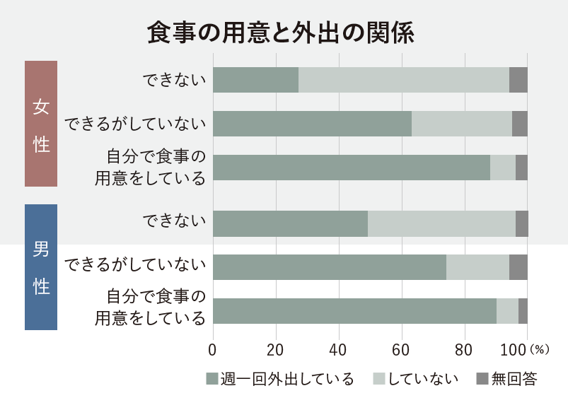 さらに自分で食事の用意をしている人の約9割が「週に一回以上外出」しており、「キッチンを充実させることが自分で調理、外出へとつながり、おそらく健康にもつながる」(松本フェロー)とみられる。