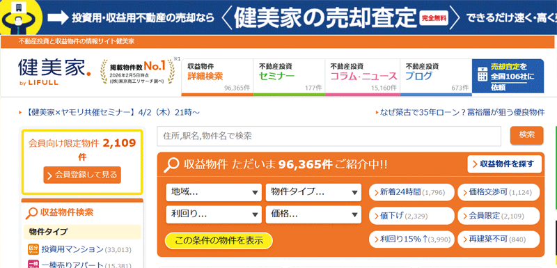 LIFULLのグループ会社で、国内最大級の不動産投資と収益物件の情報サイト「健美家」を運営する健美家。