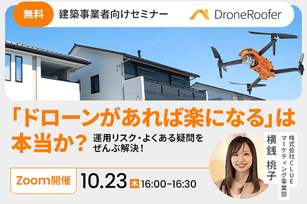 CLUEは2025年10月23日に、「『ドローンがあれば楽になる』は本当か?運用リスク・よくある疑問をぜんぶ解決!」と題し、オンラインセミナーを開催する。