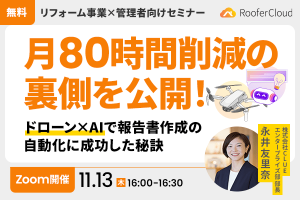 CLUEは2025年11月13日に、「月80時間削減の裏側を公開!ドローン×AIで報告書作成の自動化に成功した秘訣」と題し、オンラインセミナーを開催する。