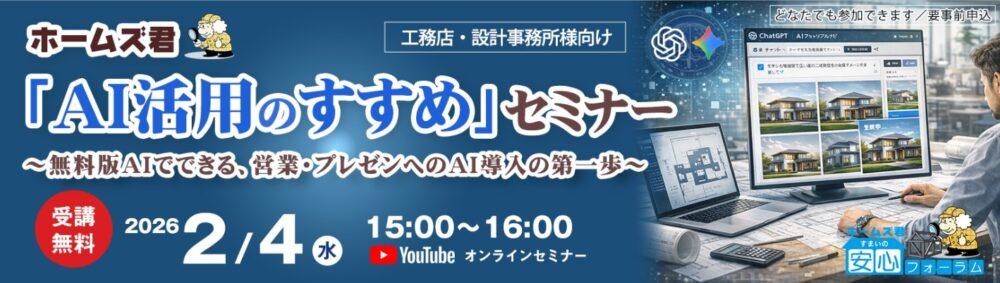 今回のセミナーは、AIをこれから業務に取り入れていこうとする人に向けて、専門的なIT知識がなくても、基礎からわかりやすく解説していく。特に工務店や設計事務所が、営業・プレゼンの現場で「AIをどう使えばよいのか」、そのアイデアを具体的に紹介する。
