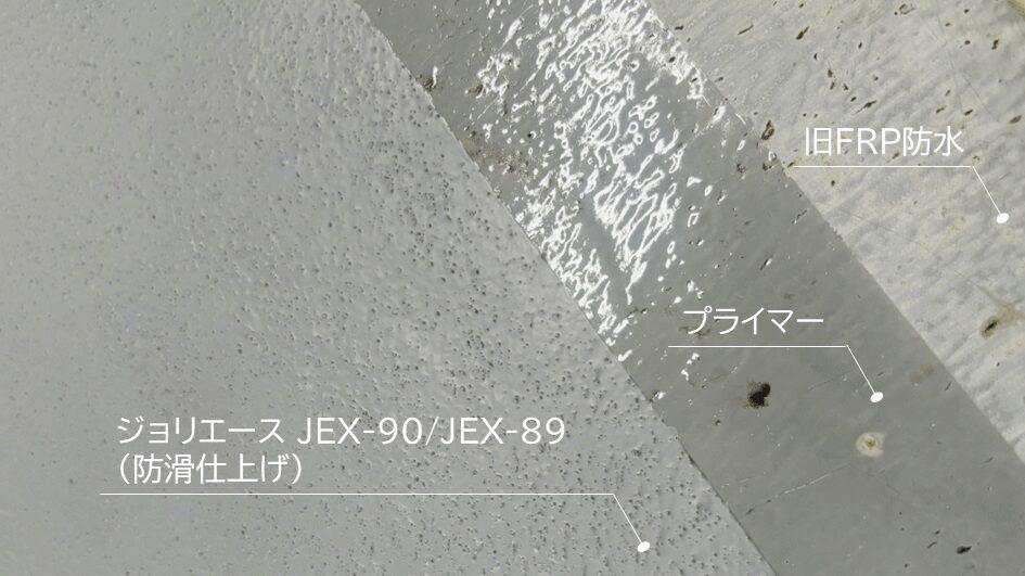 アイカ工業はFRP防水の改修用トップコートとして高機能なジョリエースJEX-90/JEX-89を発売した。FRP(繊維強化プラスチック)防水は、不飽和ポリエステル樹脂とガラス繊維などの補強材を組み合わせた塗膜防水工法。軽量で強度が高く、短時間で施工できることから、住宅のベランダやバルコニーなどで使用される。新商品は、メタクリル樹脂を主成分とし、独自の配合技術によって高強度と高柔軟性の両立を実現。ひび割れが生じにくく、高い耐候性でチョークキング現象も抑制する。