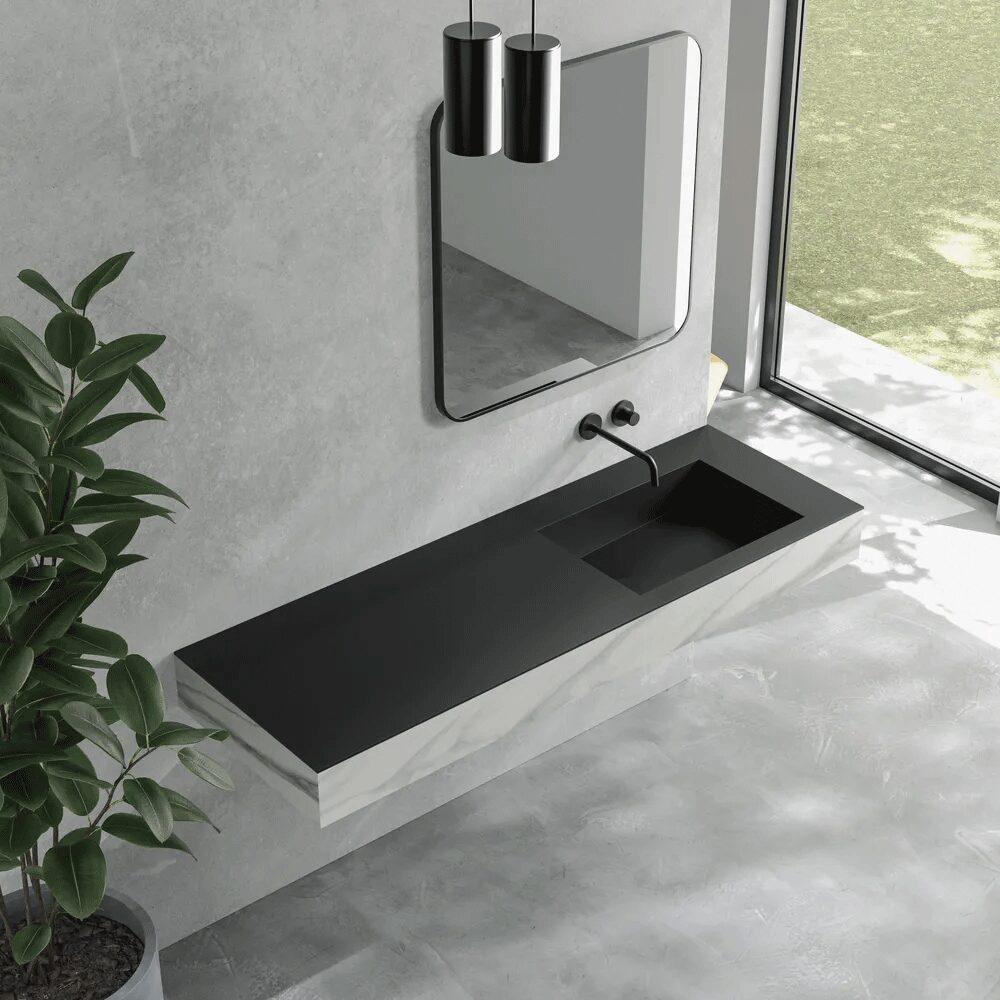 壁に浮かぶ洗面台に壁付け水栓モデルを追加