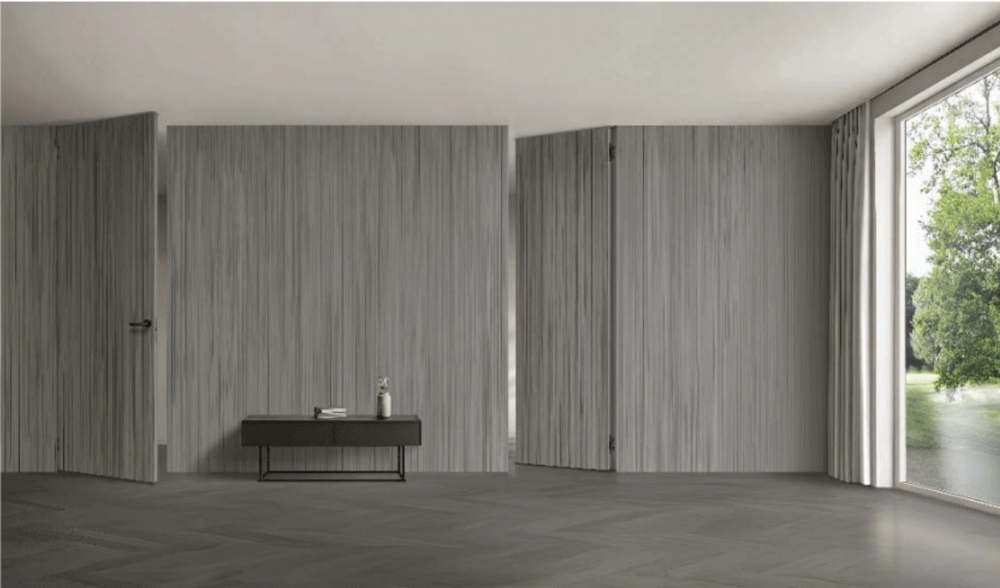 KAMIYAはこれまで国内になかった開閉動作により、壁面化®をさらに進化させたフルハイトドア・インワードタイプを発売する。日本の住宅では、廊下の狭さからドアを内開きにすることが一般的で、トイレだけは非常時の対応から外開きになっている。これまでは廊下にトイレと居室のドアが並んでいる場合、壁の面を揃えることは不可能であったが、この製品は内開きと外開きが混在していても壁面をフラットに保てる。